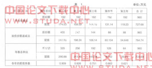 通过上述三种方案的比较分析,采取缩短折旧年限或者加速折旧方法,在固定资产预计使用寿命前期计提的折旧较多。因货币的时间价值效应,比采取通常折旧方法抵税效应明显。在上述三种方案中,方案一采取通常折旧方法抵税最少,方案二采取双倍余额递减法抵税最多。采取双倍余额递减法较正常折旧方法多抵税258.96-240.13=18.83(万元);采取方案三年数总和法,较正常折旧方法多抵税242.11-2401.3=1.98(万元)。